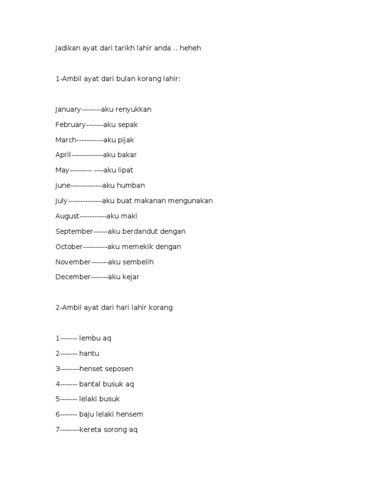 Sambung Ayat Bersempena Tarikh Lahir Pdf